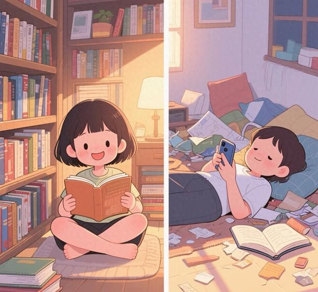 父母以身作则:放下手机,拿起书本,做好榜样。