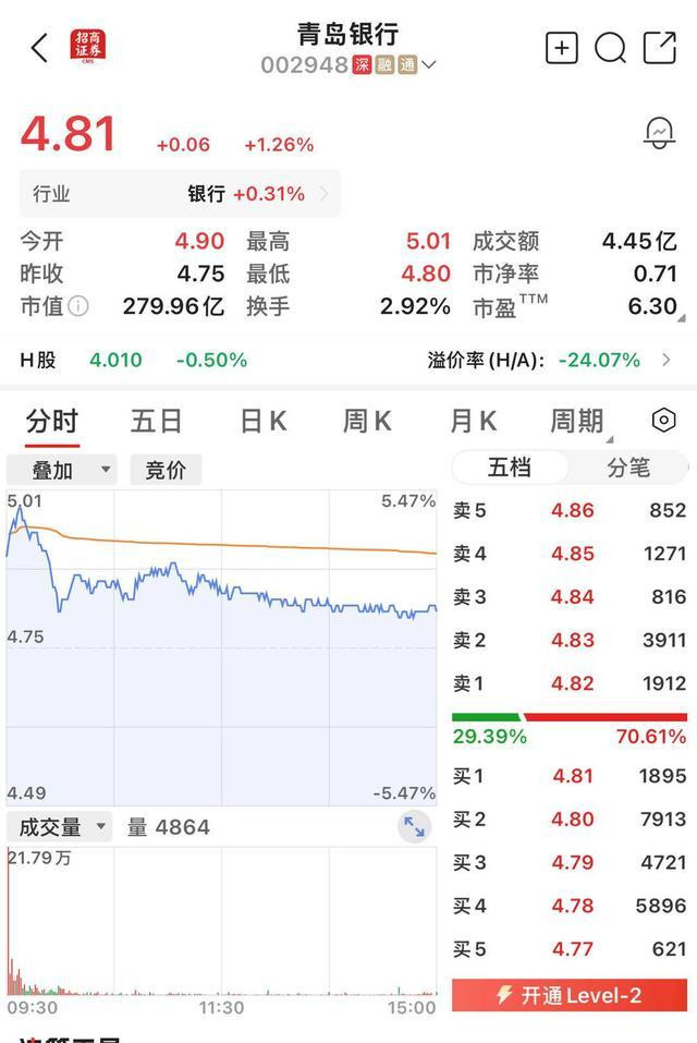 8月1日,A股盘中,银行板块集体异动,农业银行股价盘中一度创出历史新高,青岛银行一度大涨超5%,截至收盘,宁波银行涨超2%,南京银行、成都银行、杭州银行、江苏银行涨超1%,工商银行、浦发银行、北京银行、平安银行小幅上涨。